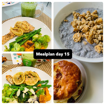 Dinner : green smoothies, baked salmon and pumpkin salad
